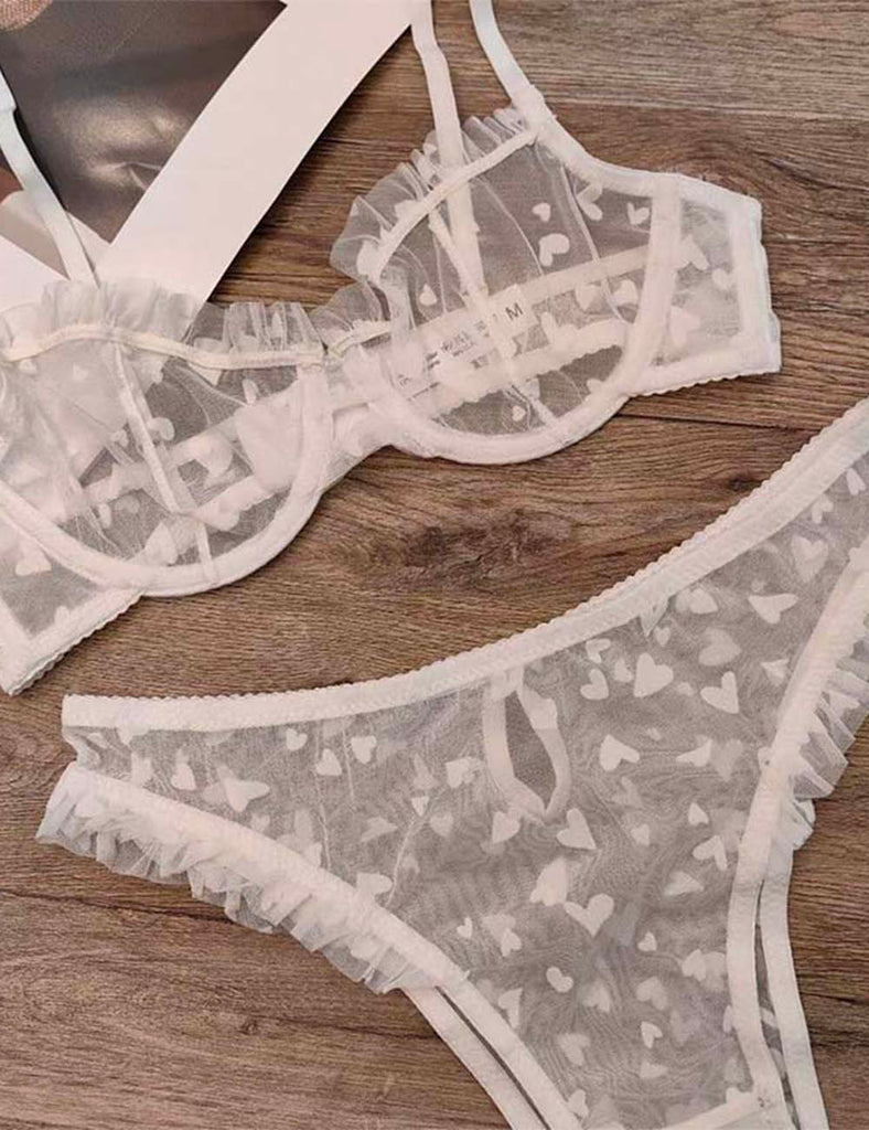 Damen Spitze Herzmuster Sexy 2ER Dessous-Set
